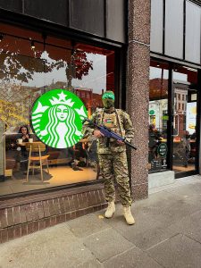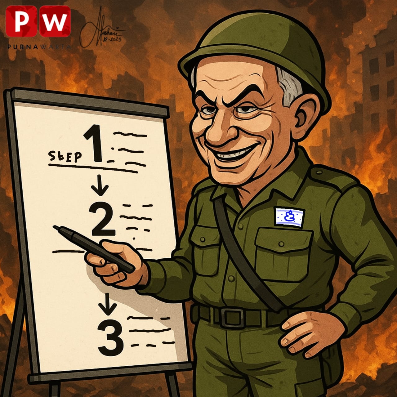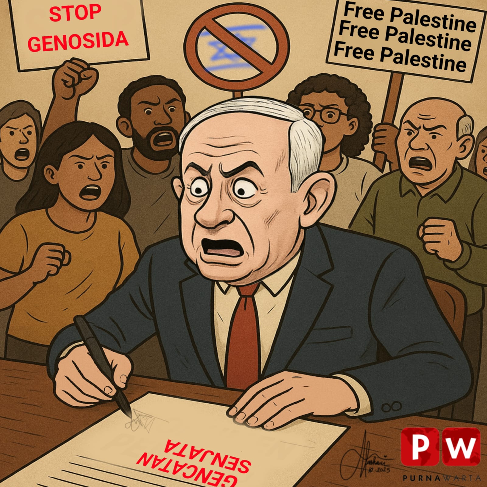 Purna Warta – Seorang Amerika di New York dengan gaya berpakaian militer Qassam Hamas berdiri [...]