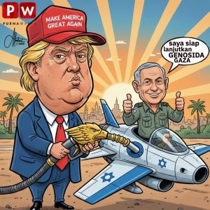 [KARIKATUR] – AS adalah Pemasok Utama Bahan Bakar Pesawat Militer Zionis Israel