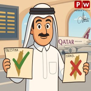 [KARIKATUR] – Qatar Airways Hapus Nama Israel di Rute Penerbangannya dan diganti dengan Nama Wilayah Palestina