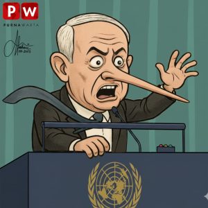 [KARIKATUR] – Netanyahu Cosplay Jadi Pinokio di Sidang PBB