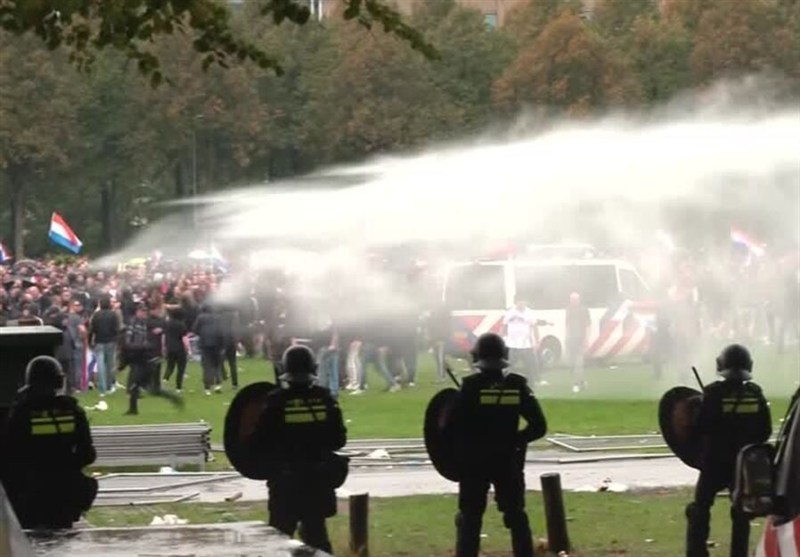 Rekaman dari stasiun televisi NOS menunjukkan para demonstran, banyak yang membawa bendera Belanda dan sayap kanan, melemparkan batu dan botol ke arah polisi.