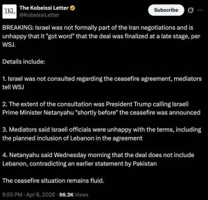 Padahal, sejak pagi hari, Israel melanggar beberapa ketentuan gencatan senjata dua minggu antara Iran dan United States, menyerang berbagai lokasi di Lebanon, menewaskan puluhan warga sipil tak bersalah.