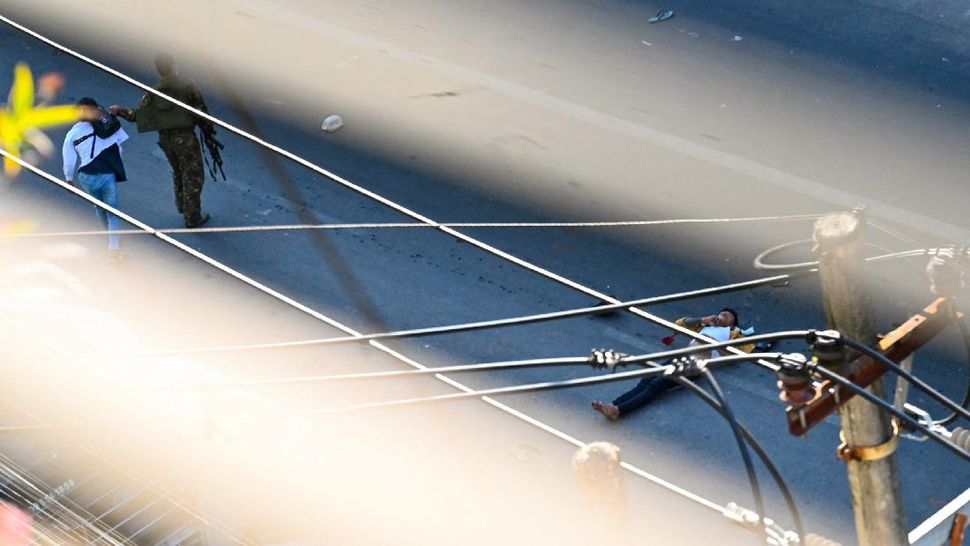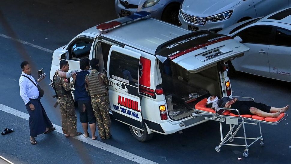 Seorang saksi juga menyampaikan kepada Associated Press bahwa pedemo hanya berada di jalan selama dua menit, sebelum truk militer menabrak mereka. (Photo by AFP)