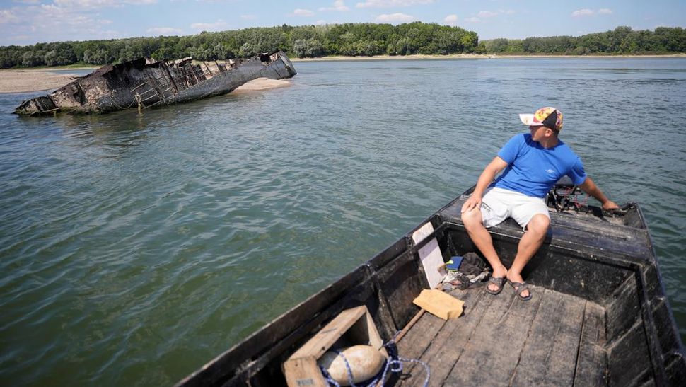 Akibatnya, hingga kini ratusan bangkai kapal perang tersebut kerap menghambat aliran air sungai terutama kala permukaan air rendah. Tak hanya di Serbia, kekeringan parah selama berbulan-bulan dengan suhu mencapai rekor tertinggi juga mengganggu lalu lintas sungai di arteri vital bagian lain Eropa termasuk Jerman, Italia, dan Prancis. Pihak berwenang Serbia terpaksa melakukan pengerukan untuk menjaga jalur navigasi di Sungai Danube agar tetap terbuka. (REUTERS/Fedja Grulovic)