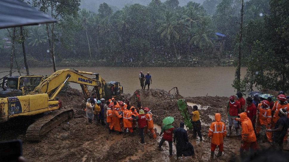 PurnaWarta – Setidaknya 22 orang meninggal dunia dan lima orang lainnya hilang akibat hujan lebat yang memicu banjir bandang dan longsor di Kerala, India, akhir pekan lalu. (AFP/Appu S. Narayanan)