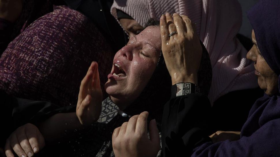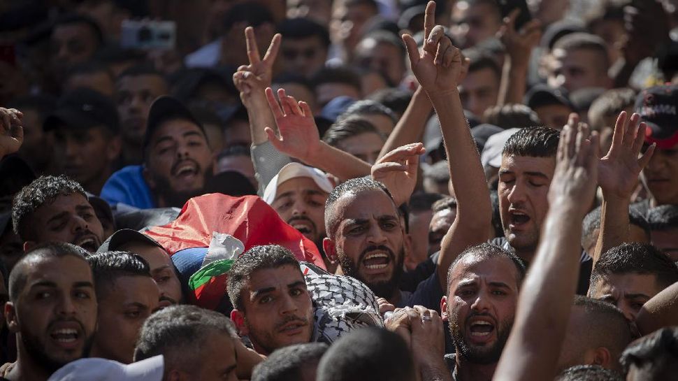 PurnaWarta – Warga menumpahkan kesedihannya saat berarak mengantar jasad bocah Palestina, Imad Hashash, yang ditembak mati oleh aparat Israel pada Selasa (24/8). Warga tak terima karena Hashash hanya bocah 15 tahun yang menjadi korban salah sasaran tembak aparat Israel. (AP Photo/Majdi Mohammed)