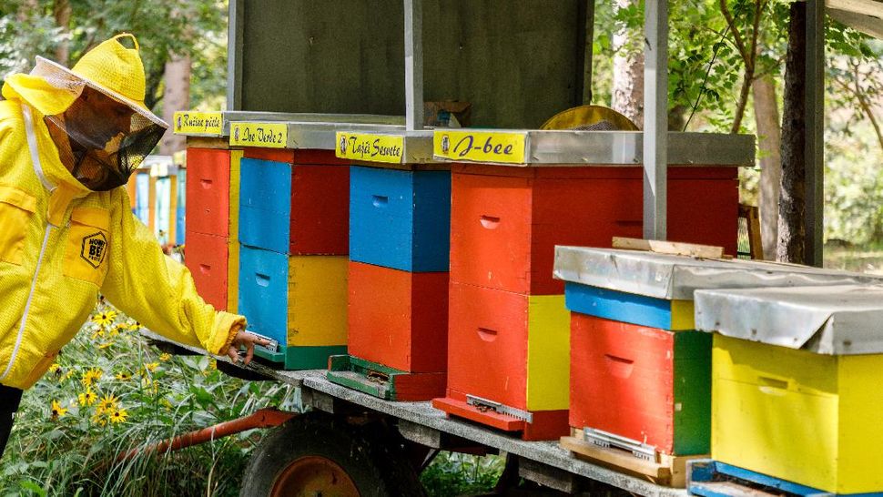 “Kemudian istri saya dan saya datang ke ide untuk membiarkan orang-orang belajar cara kerjanya dengan memiliki sarang lebah mereka sendiri,” kata Balja, yang keluarganya telah menghabiskan puluhan tahun memelihara lebah. (REUTERS/Antonio Bronic)