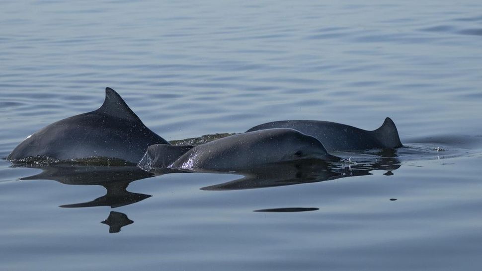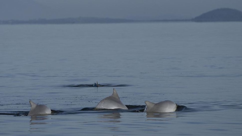Laboratory of Aquatic Mammals and Bioindicators, mengambil foto lumba-lumba Guyana di Teluk Guanabara, di Rio de Janeiro. (AP Photo/Silvia Izquierdo)
