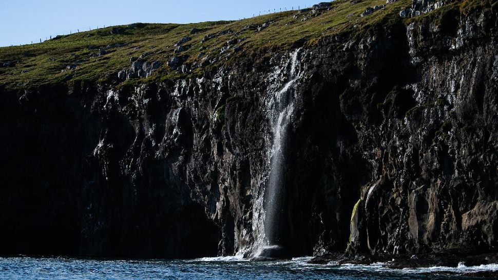 PurnaWarta – Air terjun Mulafossur di Pulau Vagar terlihat kejauhan. Pulau ini merupakan salah satu bagian wilayah Kepulauan Faroe, yang berlokasi antara Skotlandia dan Islandia, dan masuk ke dalam wilayah otonom Kerajaan Denmark. (Jonathan NACKSTRAND / AFP)