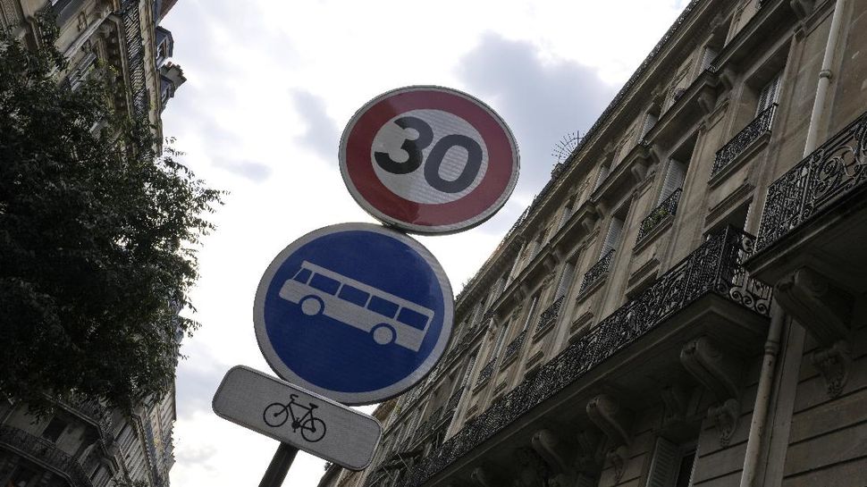 PurnaWarta – Pembatasan kecepatan kendaraan 30 km/jam hampir berlaku di seluruh wilayah di Paris. (AP Photo/Francois Mori)