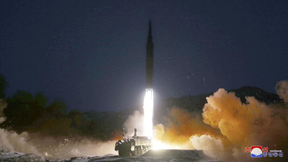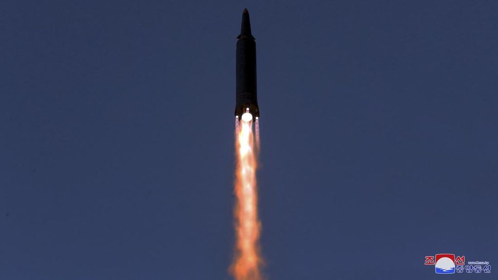 Uji coba rudal terbaru Korut ini disebut melibatkan teknologi peluru kendali hipersonik yang memiliki kecepatan lebih dari suara. (KCNA via REUTERS)