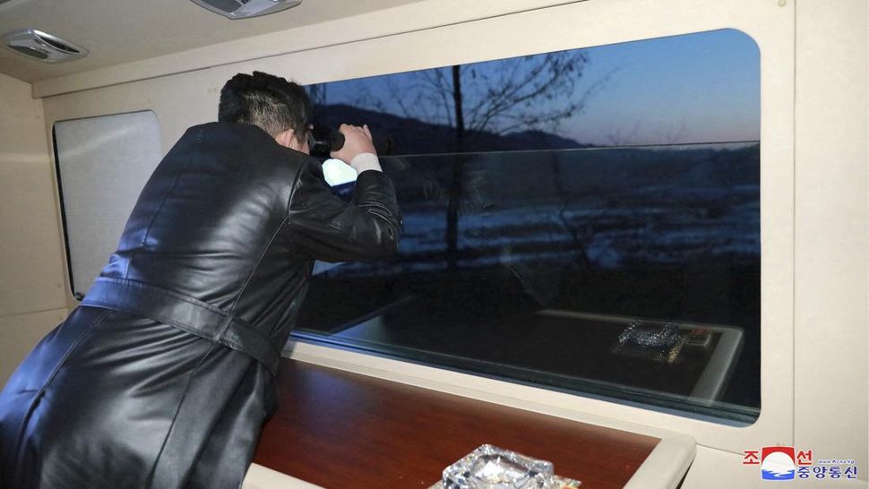 PurnaWarta – Dengan mantel kulit hitam, Kim Jong-un terlihat tengah memberi arahan saat menginspeksi uji coba peluncuran rudal hipersonik di sebuah lokasi yang dirahasiakan. (KCNA via REUTERS)