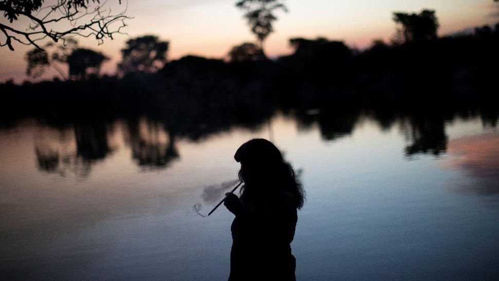 Ketika seorang kepala suku asli Amazon, Yawalapiti, yang mendiami hutan lindung Xingu meninggal dunia, para penduduknya berkumpul melaksanakan ritual pemakaman bernama Kuarup. (REUTERS/Ueslei Marcelino)