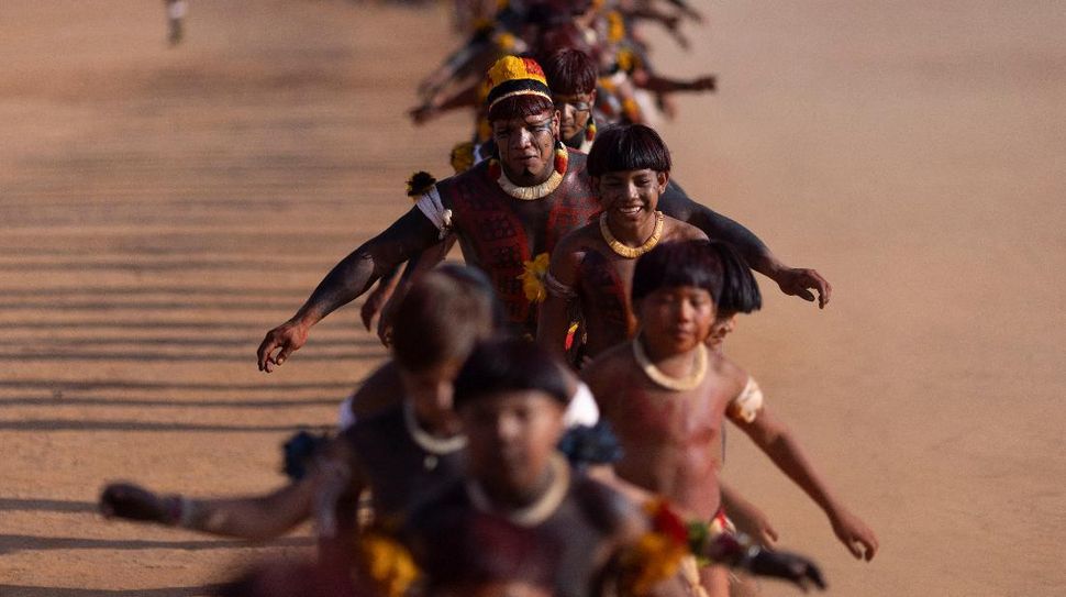 PurnaWarta – Ketika seorang kepala suku asli Amazon, Yawalapiti, yang mendiami hutan lindung Xingu meninggal dunia, para penduduknya berkumpul melaksanakan ritual pemakaman bernama Kuarup. Mengenakan cat tubuh dan bulu burung, mereka bergabung dalam tarian seremonial, pertempuran, dan pesta untuk merayakan kehidupan, kematian, dan kelahiran kembali. (REUTERS/Ueslei Marcelino)