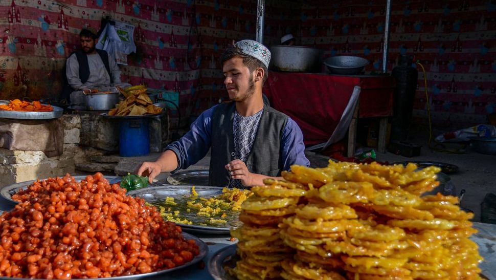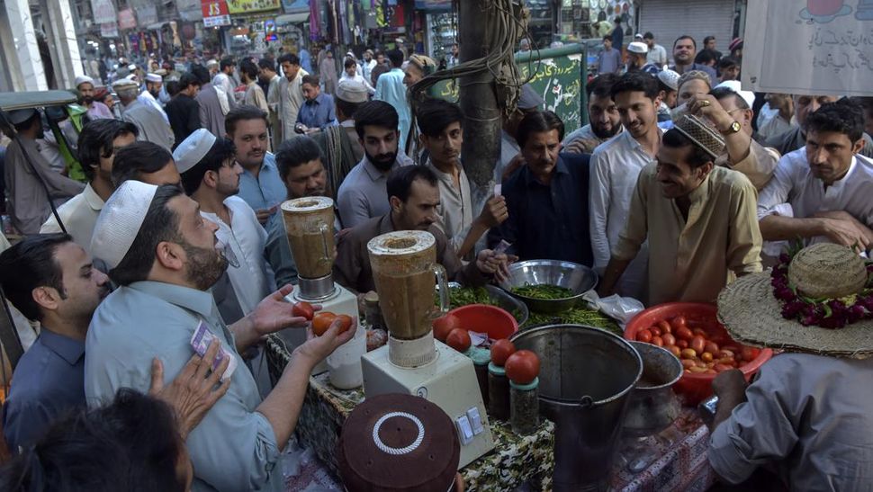 Pasar-pasar di dekat masjid-masjid di Pakistan ramai dengan orang yang banyak berhenti untuk menikmati kue-kue manis yang digoreng dan membeli makanan untuk dibagikan kepada orang miskin. (AFP Photo/Munir uz zaman)