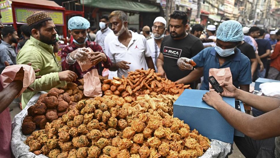 PurnaWarta – Saat Ramadan, masjid-masjid dan jalan-jalan pasar di Asia dipenuhi dengan kerumunan yang menjajakan makanan beraroma manis untuk berbuka puasa. Salah satunya di Pasar Chawkbazar yang berusia berabad-abad di Bangladesh dan merupakan pusat makanan tradisional selama bulan Ramadan, dengan ratusan kedai makanan dadakan yang menjual daging panggang tradisional dan makanan lezat. (AFP Photo/Money Sharma)