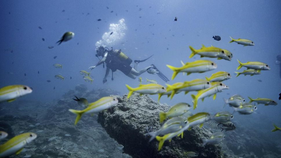 Turis dapat melakukan aktivitas snorkeling dan menyelam di laut Zanzibar. Saat menyelam, mereka dapat menikmati keindahan karang bawah laut Matemwe di Zanzibar, Tanzania. (Sumy Sadurni / AFP).