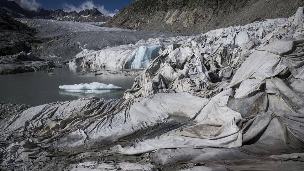 Untuk mencegah pencairan gletser terus mencair, penduduk setempat pun menutupi gua-gua es dengan selimut. REUTERS/Arnd Wiegmann TPX IMAGES OF THE DAY