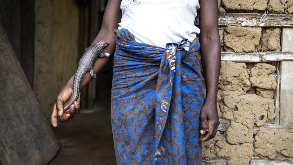 Tenggiling, mamalia bersisik dan tidak bergigi pemakan serangga, adalah salah satu hewan favorit diburu di Liberia. Warga Liberia memakan dagingnya, lalu sisiknya yang berbahan keratin seperti kuku manusia, dijual. (Photo by JOHN WESSELS / AFP)