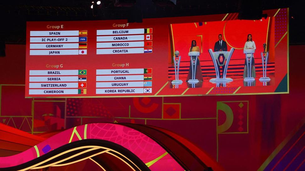 PurnaWarta – Drawing Piala Dunia 2022 digelar di Doha Exhibition & Convention Center, Doha, Qatar, Jumat (1/4) malam waktu setempat. (REUTERS/Ahmed Jadallah)