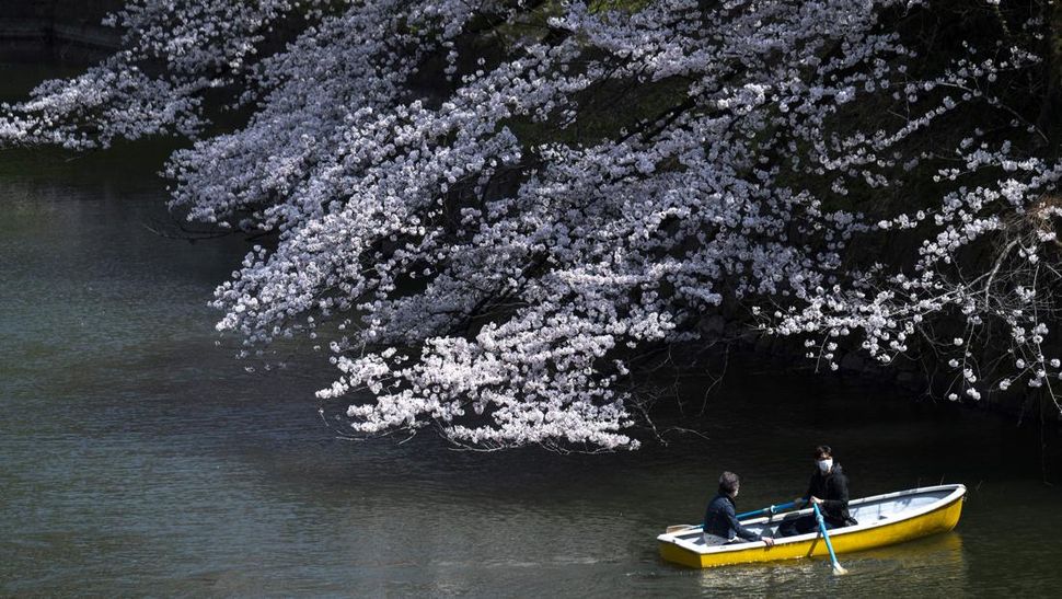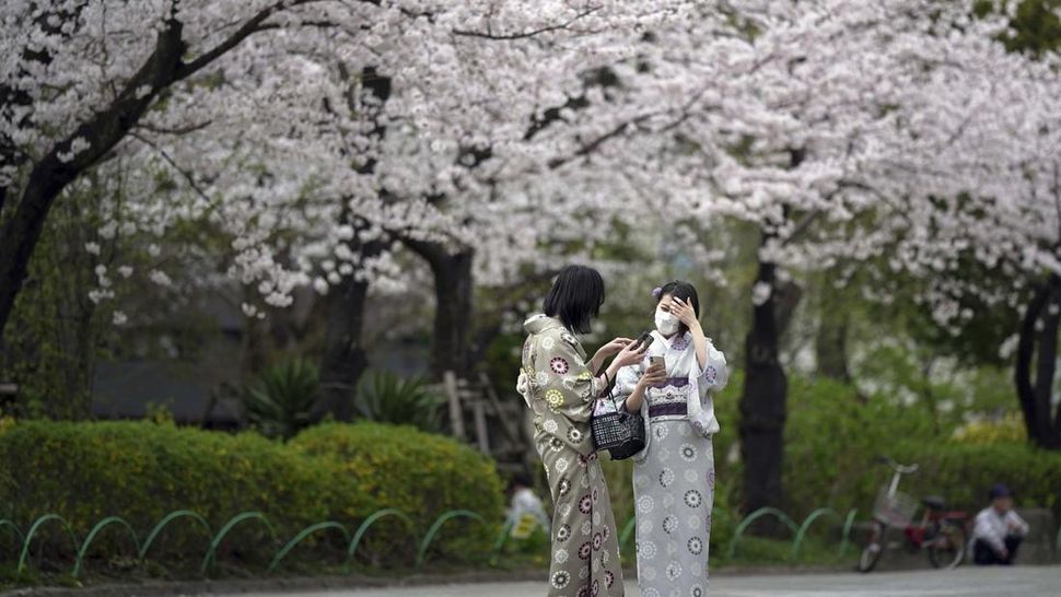 Tradisi menikmati keindahan bunga sakura ini biasa dikenal dengan nama “Hanami”. Di masa-masa sebelum pandemi, warga Jepang biasa piknik, makan dan minum di bawah rimbun pohon sakura. (AP Photo/Eugene Hoshiko)