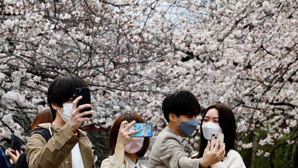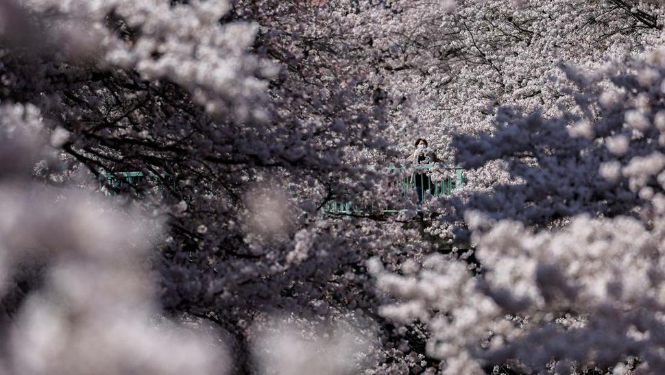 Tahun ini mekar bunga sakura datang lebih awal, menarik perhatian warga dan wisatawan yang terpikat keindahannya. (Photo by Charly TRIBALLEAU / AFP)