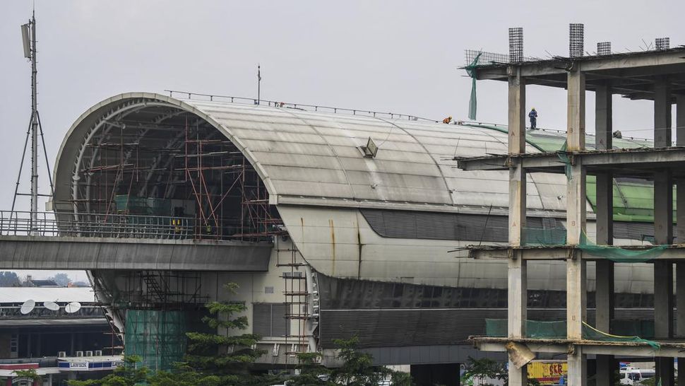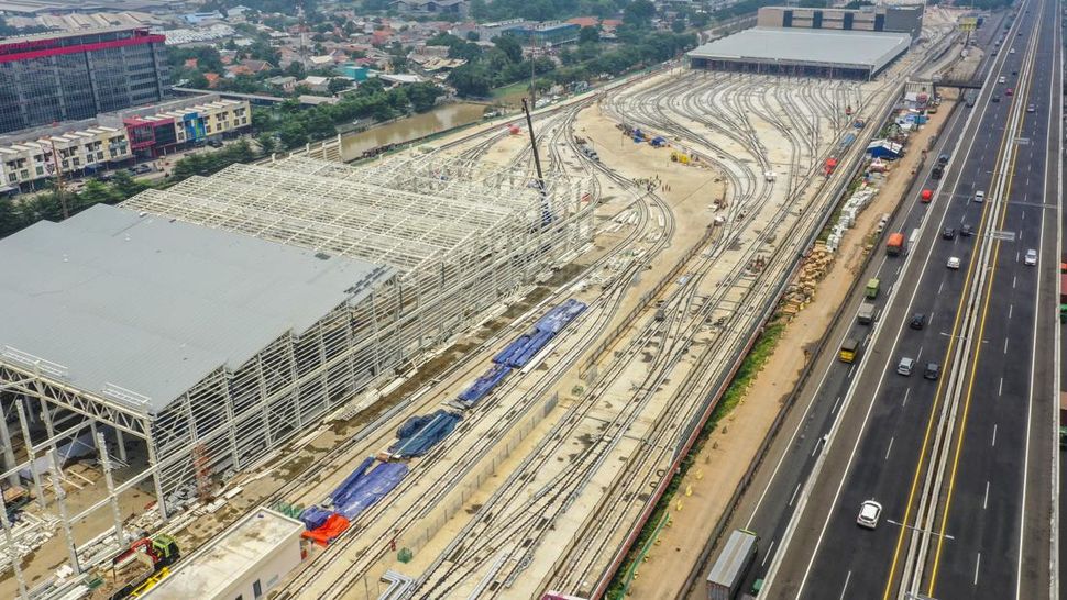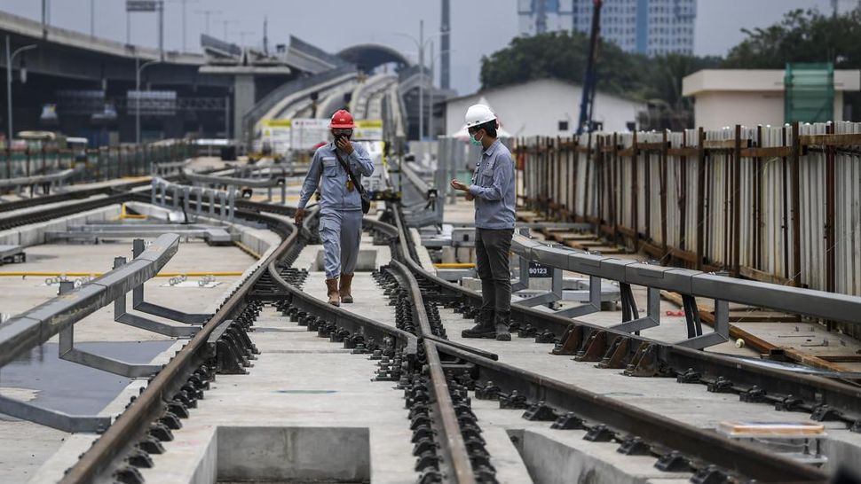 PurnaWarta – Pekerja menyelesaikan proyek infrastruktur Depo LRT (Light Rail Transit) di Jatimulya, Bekasi, Jawa Barat, Kamis (10/3). (ANTARA FOTO/Galih Pradipta).