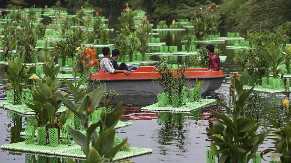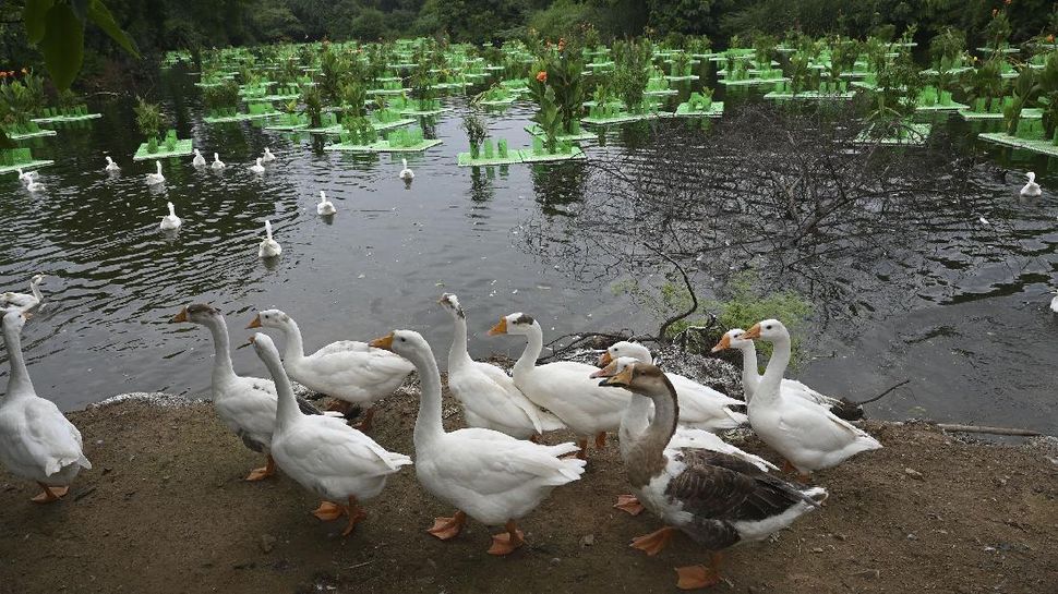 Selain itu, lahan basah terapung juga membantu bakteri baik berkembang biak. Kemudian teknik lahan basah terapung juga perlahan bisa membersihkan air pada permukaan danau. (Sajjad HUSSAIN/AFP)