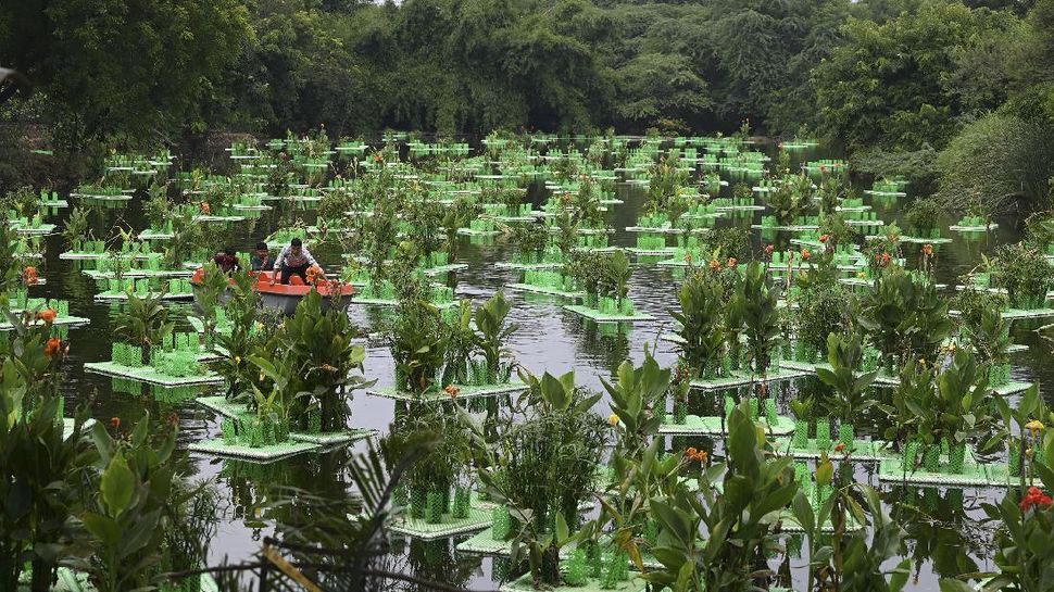 Teknik itu juga diterapkan buat memperbaiki ekosistem di sejumlah danau di India, yakni Rani Khera, Jaffarpur Kalan, Nangloi dan Sonia Vihar. (Sajjad HUSSAIN/AFP)