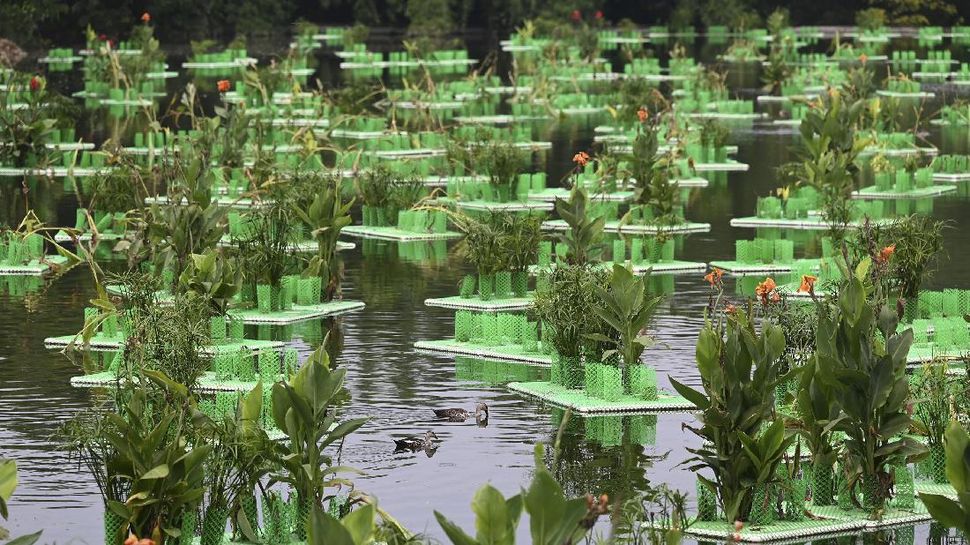Teknik lahan basah terapung itu disebut bisa memulihkan kandungan oksigen dalam air. (Sajjad HUSSAIN/AFP)