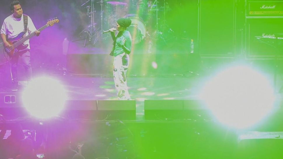 Penyanyi Sivia membawakan sejumlah lagu dalam 11th Ramadhan Jazz Festival di pelataran Masjid Cut Meutia, Jakarta, Sabtu (23/4). (Foto: ANTARA FOTO/Galih Pradipta/rwa.)