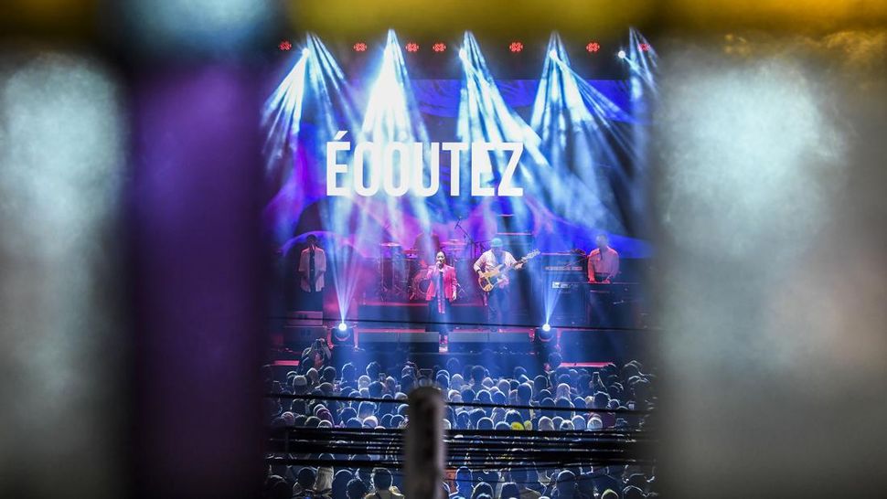 Band Ecoutez membawakan sejumlah lagu dalam 11th Ramadhan Jazz Festival di pelataran Masjid Cut Meutia, Jakarta, Sabtu (23/4/2022). (Foto: ANTARA FOTO/Galih Pradipta/rwa.)