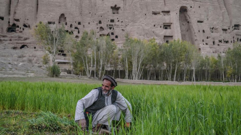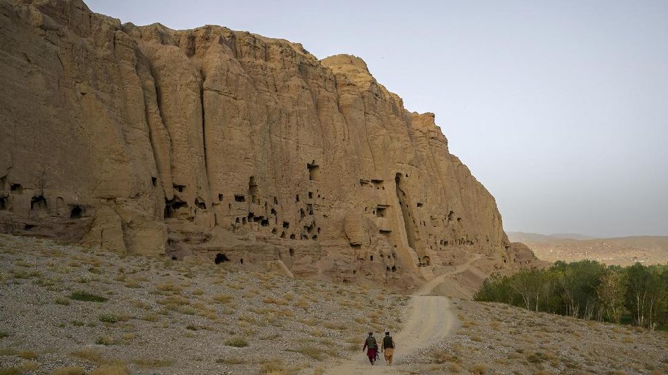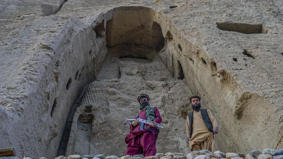 Namun pada 2001, rezim Taliban yang menguasai Afghanistan kala itu memutuskan menghancurkan dua patung bersejarah tersebut atas nama hukum syariat. Kini, Taliban kembali berkuasa di Afghanistan. Namun mereka saat ini mengklaim akan menjaga lokasi bersejarah tersebut. Keputusan ini dinilai sebagai bentuk kesadaran Taliban bahwa menjaga peninggalan kuno akan berdampak secara ekonomi. (Photo by BULENT KILIC / AFP)