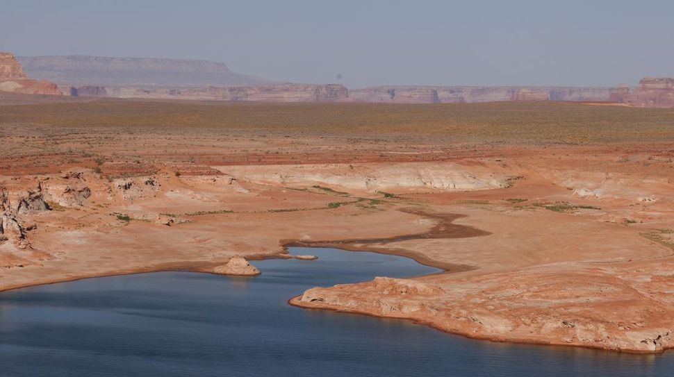 Dasar Danau Powell semakin terlihat menandakan permukaan air Sungai Colorado telah menurun drastis ke posisi terendah sejak danau itu dialiri air pada 1960an. (REUTERS/Caitlin Ochs)