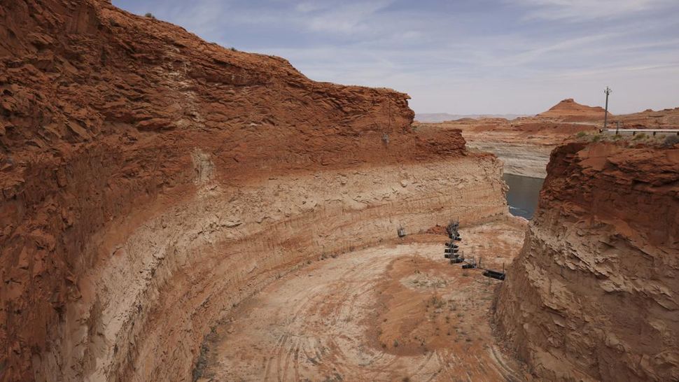 Wisata di Bendungan Glen Canyon dan Danau Powell terancam tutup imbus penyusutan air yang belum pernah terjadi sebelumnya sejak 1960. Kanal di Bendungan Glen Canyon mengalami kekeringan pertama sejak 1980. Kondisi meresahkan para pelaku usaha bisnis wisata di lokasi sekitar. (REUTERS/Caitlin Ochs)