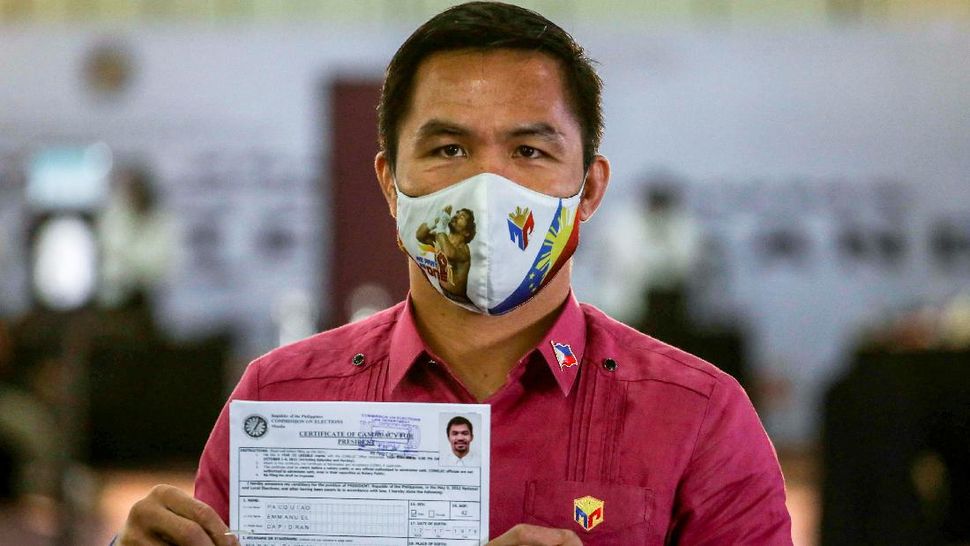 Jika mereka terpilih, Pacquiao berjanji akan fokus untuk mengentaskan kemiskinan, meningkatkan respons pandemi Covid-19, meningkatkan konektivitas internet, menyediakan pasokan listrik yang cukup, dan mengakhiri korupsi dengan memenjarakan pejabat yang bersalah. (Photo by Maria Tan / AFP)