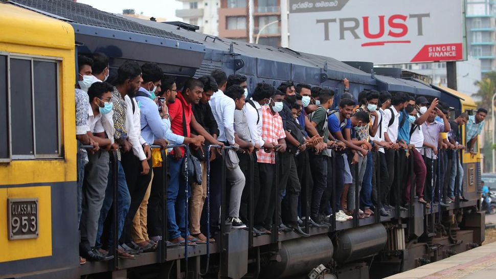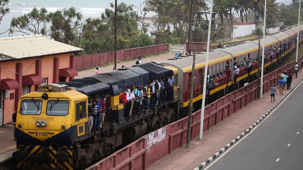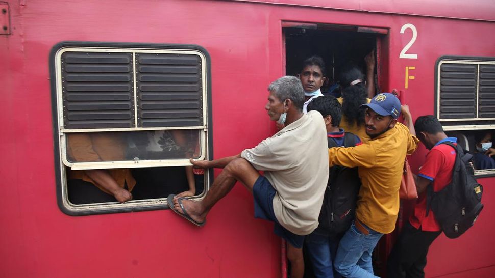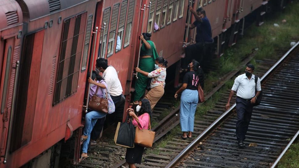 PurnaWarta – Masyarakat Sri Lanka terlihat menunggu kereta di Kolombo pada Rabu (6/7) lalu. (Photo by Pradeep Dambarage/NurPhoto via Getty Images).