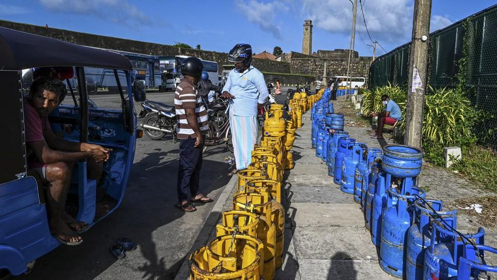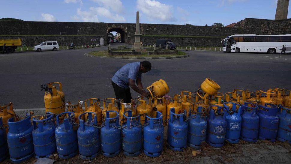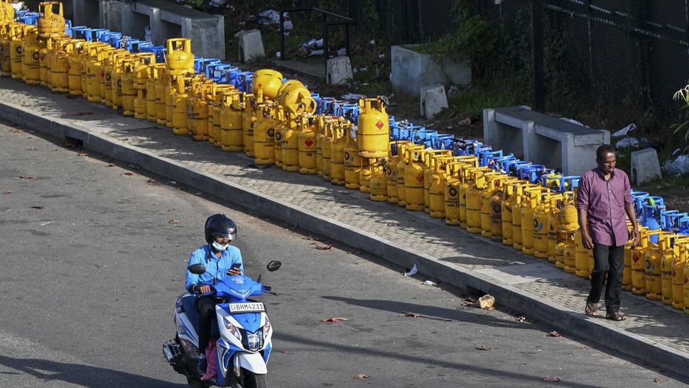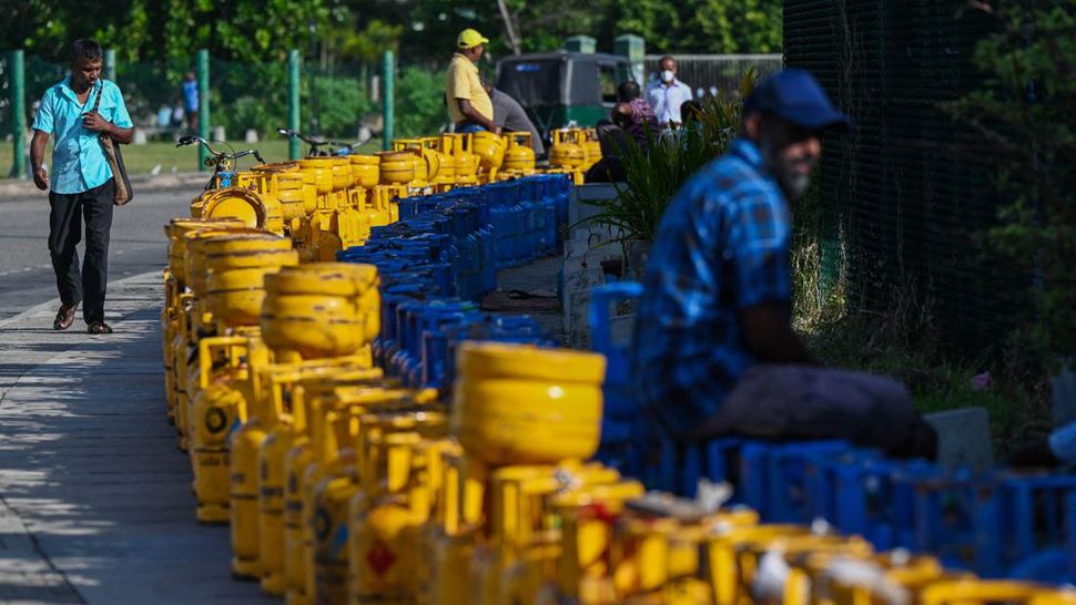 Sri Lanka tengah menghadapi kelangkaan gas yang menyebabkan harga jualnya selangit. (Photo by ISHARA S. KODIKARA / AFP).