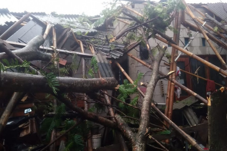 “Cuaca mendung gelap di sekitar lokasi dan turun hujan disertai angin kencang yang mengakibatkan permukiman warga Kampung Cisalak tersapu angin dan pepohonan tumbang menimpa beberapa rumah warga,” imbuh Munir.