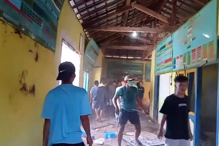 Saat berlangsung rapat untuk membahas pores tersebut, rupanya tiga calon kades dan massa simpatisan melakukan aksi perusakan. Ratusan warga merobohkan pagar, merusak tembok kantor desa, meja, dan kursi, serta semua fasilitas dibakar.